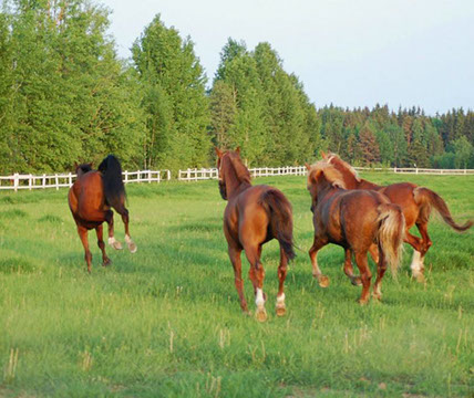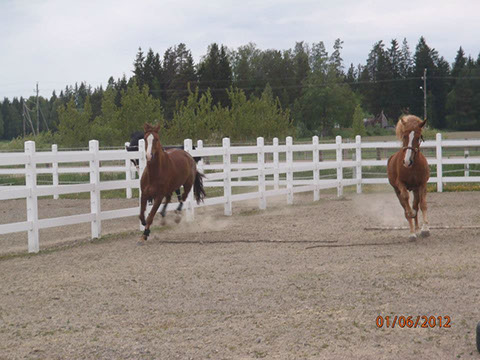 Tarhat ovat hiekkapohjaiset ja niin suuret, että niissä hevoset mahtuvat hyvin ulkoilemaan yhdessä kaverin kanssa.Kesäisin laumassa viihtyvät hevoset pääsevät myös laitumelle.